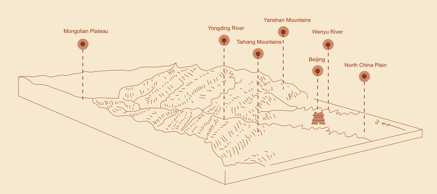The geographical location of Beijing and the use of mountains and rivers in its urban planning conformed to the traditional Chinese concept of an ideal location of the capital city.